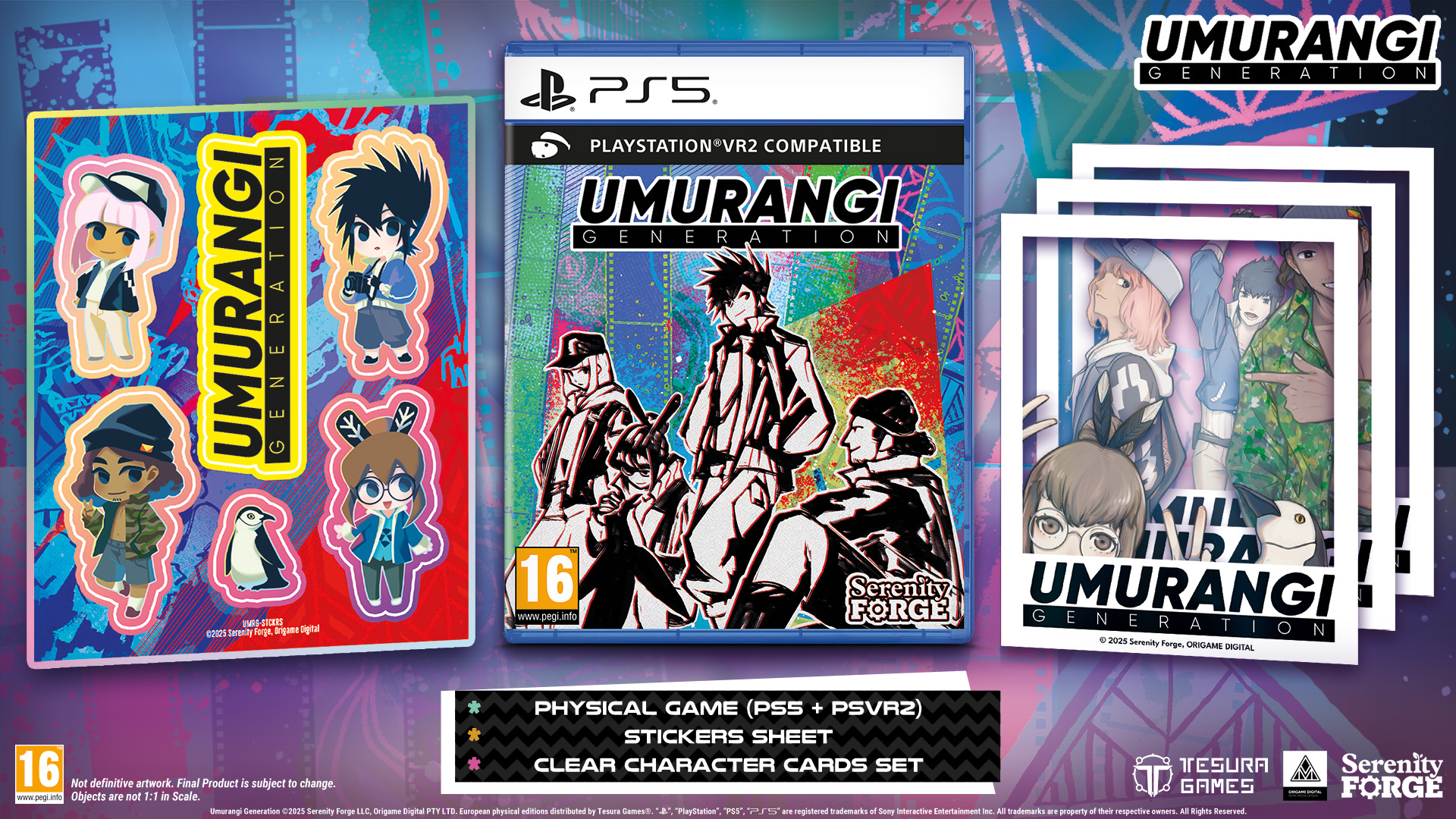 ● UMURANGI GENERATION Incluye: Juego Físico Completo (PS5 + Compatible con PSVR2), Set de Pegatinas y Tarjetas Transparente de Personaje.